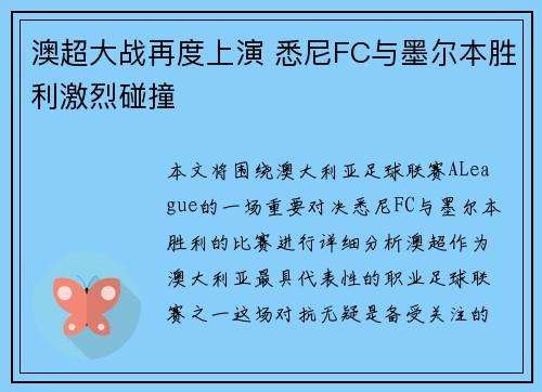 文章摘要:悉尼奥运会不仅仅是一场体育盛事,它通过精彩的歌曲与音乐表演,带动了全球音乐的热潮。尤其是《You’re the Voice》和《Time of Our Lives》等主题曲的演绎,不仅让人们对奥运有了更加深刻的感知,也促进了全球音乐文化的交流和融合。这些歌曲的重温,不仅是对悉尼奥运会辉煌时刻的回忆,更是对全球音乐趋势演变的标志。本文将从多个方面探讨悉尼奥运会歌曲如何推动全球音乐热潮,并分...