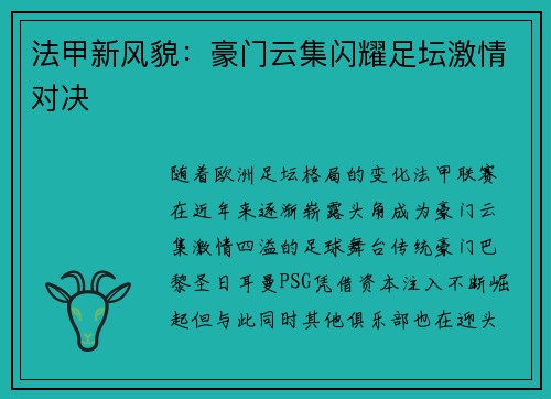 文章摘要:摩纳哥足球俱乐部,作为法国足球的一支劲旅,近年来经历了飞速崛起的历程,逐渐成为法甲冠军席位的有力竞争者。通过重视青训体系、引进高水平球员、稳定的战术打法及高效的管理模式,摩纳哥足球在法甲赛场上展现了强大的竞争力。特别是在2016-2017赛季,摩纳哥以压倒性的表现斩获法甲冠军,这一成就标志着俱乐部真正进入了顶级球队的行列。本文将从青训系统、球员引进、战术演变和管理模式四个方面详细探讨摩纳...